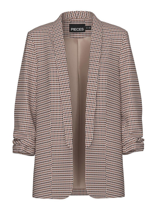 BOSELLA 3/4 PRINTED BLAZER - Silver Mink/Houndstooth
