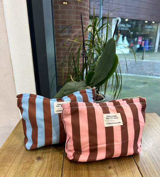 Stripe Wash Bag - Pink/Brown