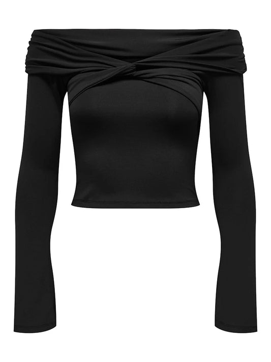 LEA LS TWIST OFF SHOULDER TOP - Black