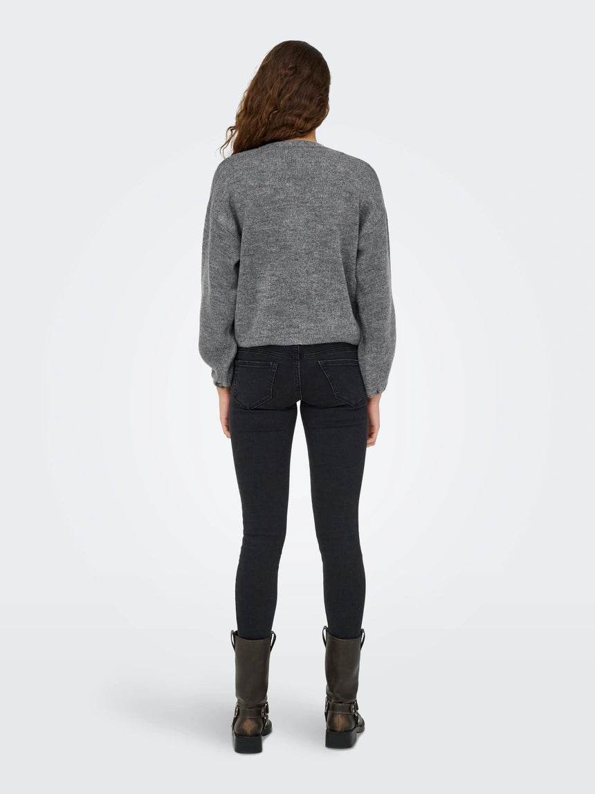 DONNA LS BOW V-NECK - Medium Grey Melange