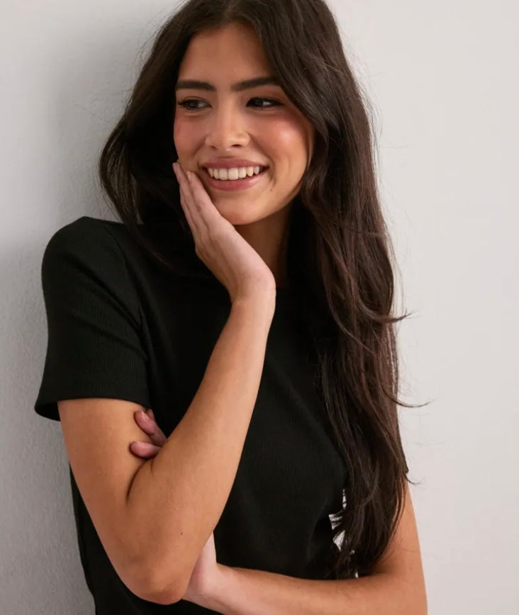 JUNE RIBBED TEE - Black